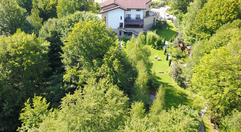 În spatele pensiunii se află un parc privat de aproximativ 4.000 mp, cu foișoare, loc de joacă pentru copii și sală de jocuri. Accesul la lac este în curs de reamenajare.